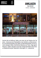 Singapur: „Disneyland mit Todesstrafe“ Russland und der Kaukasus Kamerun: Wenn Willkür regiert Menschenrechtssituation in Israel EU-Handelspolitik und das Menschenrecht auf Nahrung Amnesty on Air Amnesty-Aktion zu Vergewaltigungen im Ostkongo